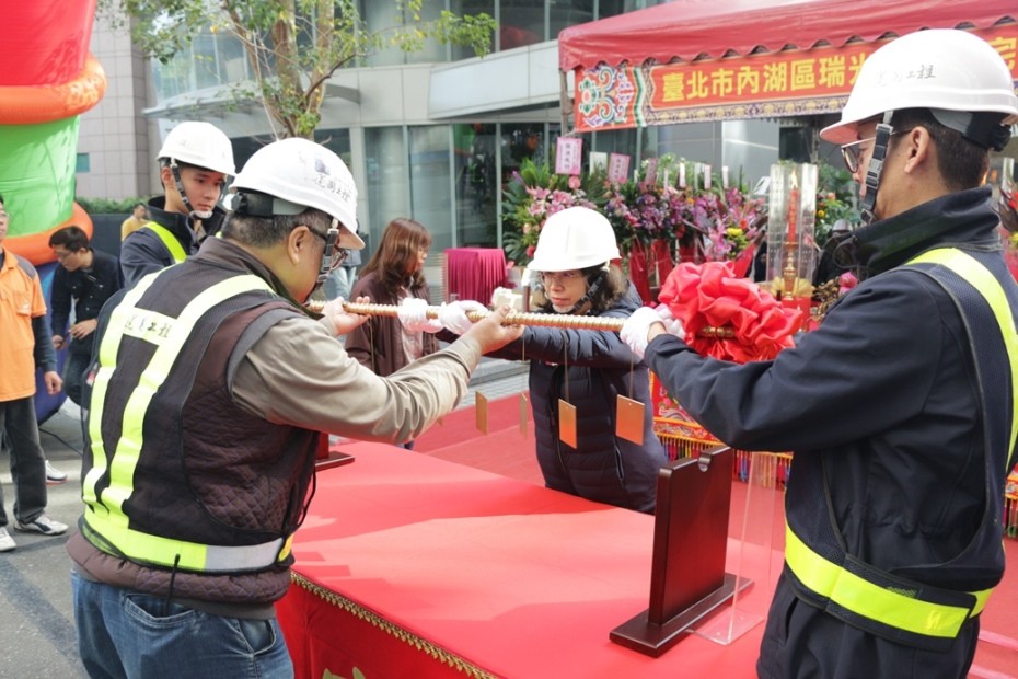 內湖瑞光社會住宅統包工程(瑞光社宅)上樑儀式於1月9日下午吉時舉辦,儀式請台北市政府都市發展局劉美秀主任秘書擔任主典人,率市府同仁、建國工程暨全體工程團隊,為上樑典禮敬備三牲鮮果、香花食饈,伏請鑑納,謹以虔誠之心拜禱。
