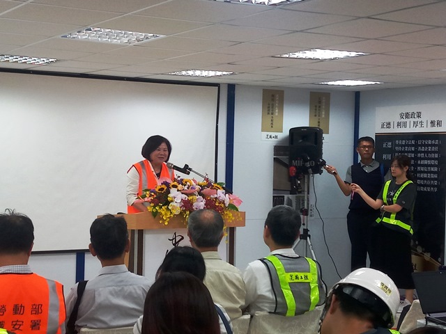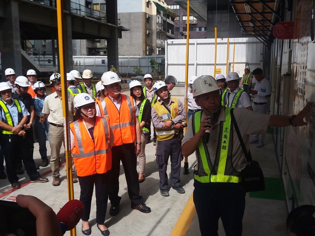 勞動部職業安全衛生署今(9)日特別選在我們的富邦施工所,向各界媒體及營造同業夥伴發布勞動部開發的行動電話應用程式「高氣溫戶外作業熱危害預警行動資訊網」,運用手機GPS定位,即可了解在地溫度與濕度計算出來的熱指數,認熱危害風險等級與查閱管理預防措施。富邦工務所關中孚於記者會簡報「高氣溫戶外作業熱危害預防」,分享我們執行夏季熱危害的管理工作。許部長在記者會後亦參觀了施工所的勞工戶外休息區,由蔡敦宇工程師向許部長及現場貴賓介紹防範熱危害的各項管理措施,包括自製的噴霧電扇、流蘇遮陽簾等,讓協力工作者可以在舒適的環境休息。