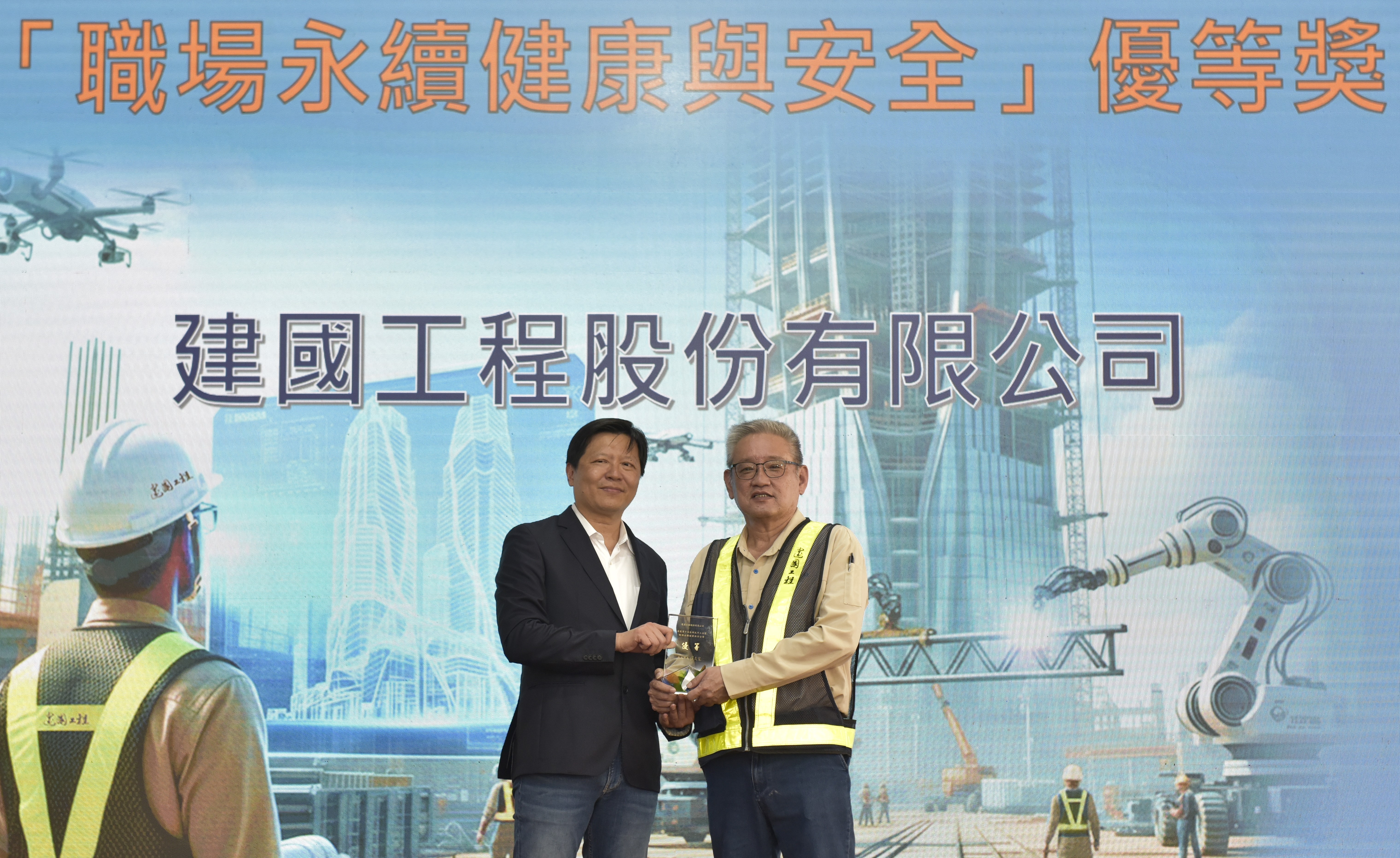 由王為彬副總經理代表受獎,感謝施工所與安全衛生部所有夥伴共同努力,建國工程所有夥伴同感榮耀!